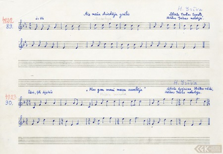 handwritten music score of "Kis kil mīnda"